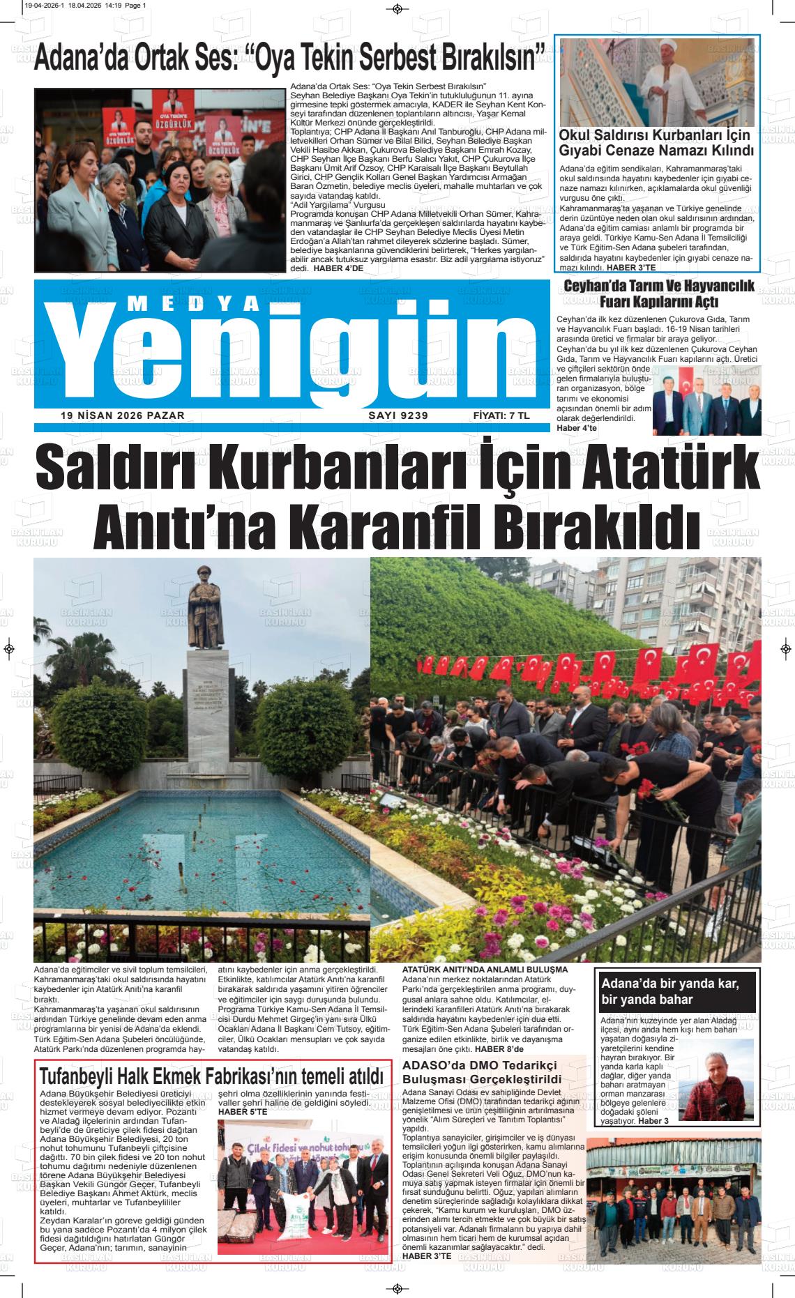 Aksaray Yerel Gazeteleri 18 Nisan 2026, Cumartesi Günü Manşeti